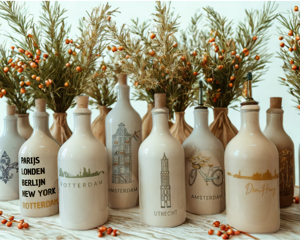 Onze keramieken oliedispensers zijn dé eyecatcher in ieder kerstpakket. Stijlvol, duurzaam en personaliseerbaar, een cadeau dat ook na de feestdagen dagelijks gebruikt wordt.